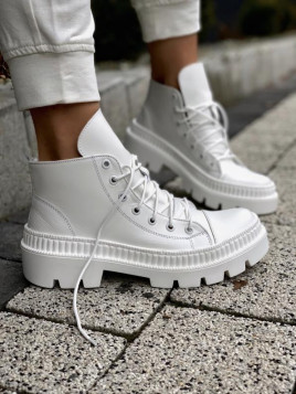 Białe trapery damskie skórzane wykonane są w całości ze skóry naturalnej licowej, idealnie dopasujesz go do wiosennych i letnich stylizacji!