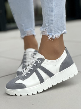 Biało-szare trampki damskie skórzane