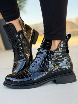 Naturalna skóra licowa o tłoczeniu krokodyla – połysk i faktura, które sprawiają, że Twoje buty przyciągają spojrzenia, a jednocześnie są niezwykle odporne na zarysowania i wilgoć.