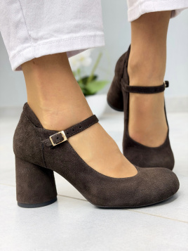 Ciemny brąz w zamszowym wykończeniu podkreśla elegancki styl obuwia i dobrze komponuje się z jasnymi spodniami, spódnicą midi czy klasyczną sukienką. Prosty fason z delikatnym paskiem przy kostce dodaje sylwetce subtelnej lekkości, a jednocześnie wprowadza ponadczasową estetykę. To model, który łączy klasykę z nowoczesną formą.