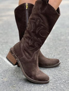 Brązowe kozaki damskie skórzane wykonane są w całości ze skóry naturalnej welurowej, idealnie dopasujesz go do wiosennych i letnich stylizacji!