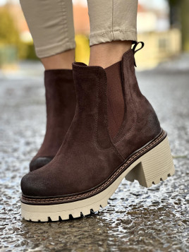 Brązowe ocieplane botki damskie ze skóry naturalnej