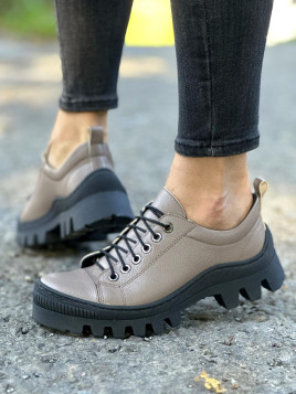 Buty są w ciepłym odcieniu cappuccino, co nadaje im elegancki i uniwersalny charakter. Wykończenie skóry jest starannie wykonane, co podkreśla ich wysoką jakość.