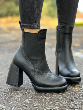 Czarne botki damskie skórzane