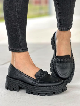 Czarne mokasyny damskie skórzane
