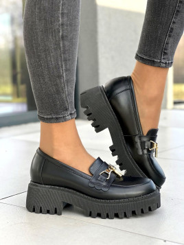 Ich charakterystyczną cechą jest złota ozdoba, która nadaje im subtelny, designerski akcent. Złote detale doskonale kontrastują z głębokim, czarnym kolorem mokasynów, nadając im wyjątkowego uroku i ponadczasowej elegancji.