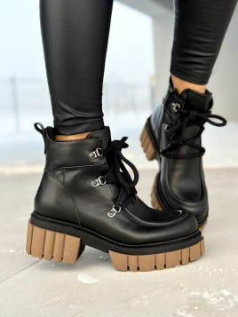 Czarne ocieplane śniegowce damskie ze skóry naturalnej