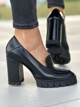 Czarne półbuty damskie skórzane