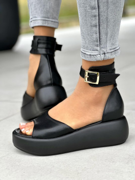 Czarne sandały damskie skórzane OLEKSY polskiej produkcji na modnym grubym spodzie
