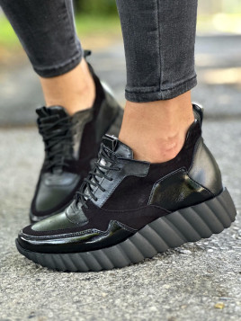 skóra naturalna lakierowana w połączeniu ze skórą naturalną zamszową