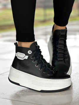 Gruba biała podeszwa to zarówno wyrazisty detal, jak i praktyczne rozwiązanie. Nadaje trampkom charakterystyczny wygląd, jednocześnie zapewniając amortyzację i komfort podczas chodzenia. Kontrast między czarną cholewką a białą podeszwą nadaje butom dynamicznego charakteru, co sprawia, że są one doskonałym uzupełnieniem casualowych, miejskich stylizacji.
