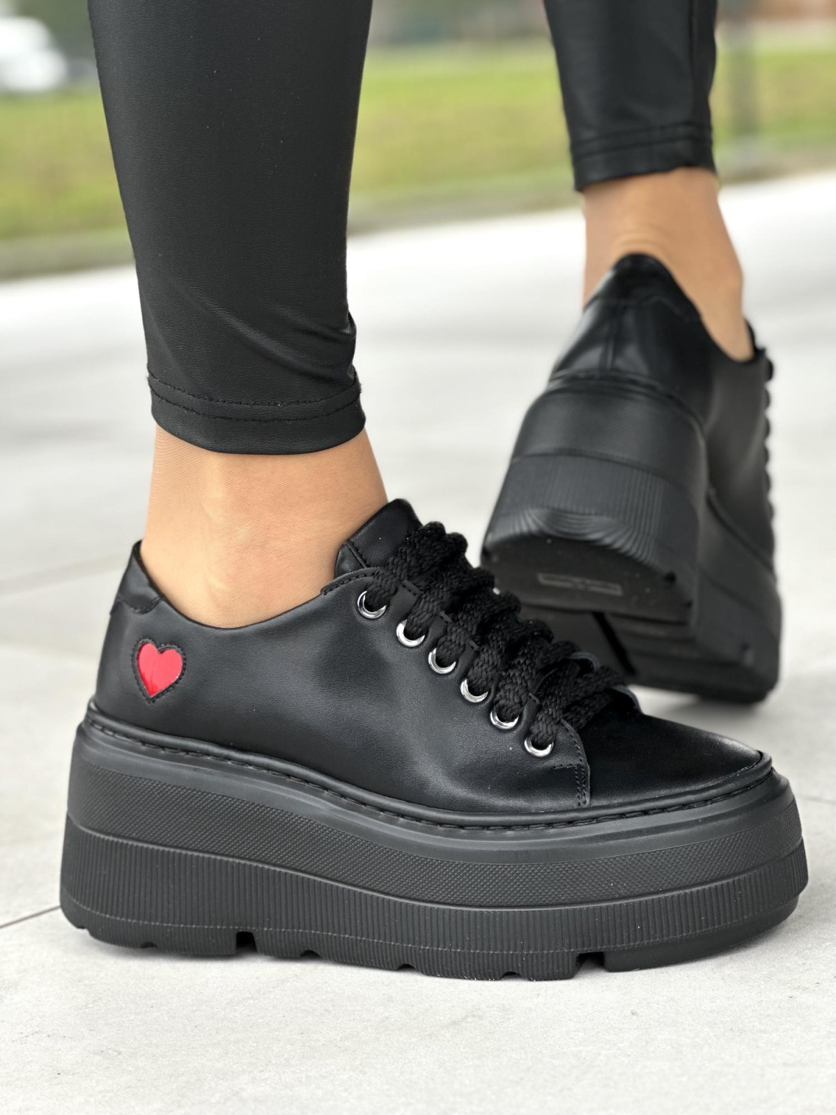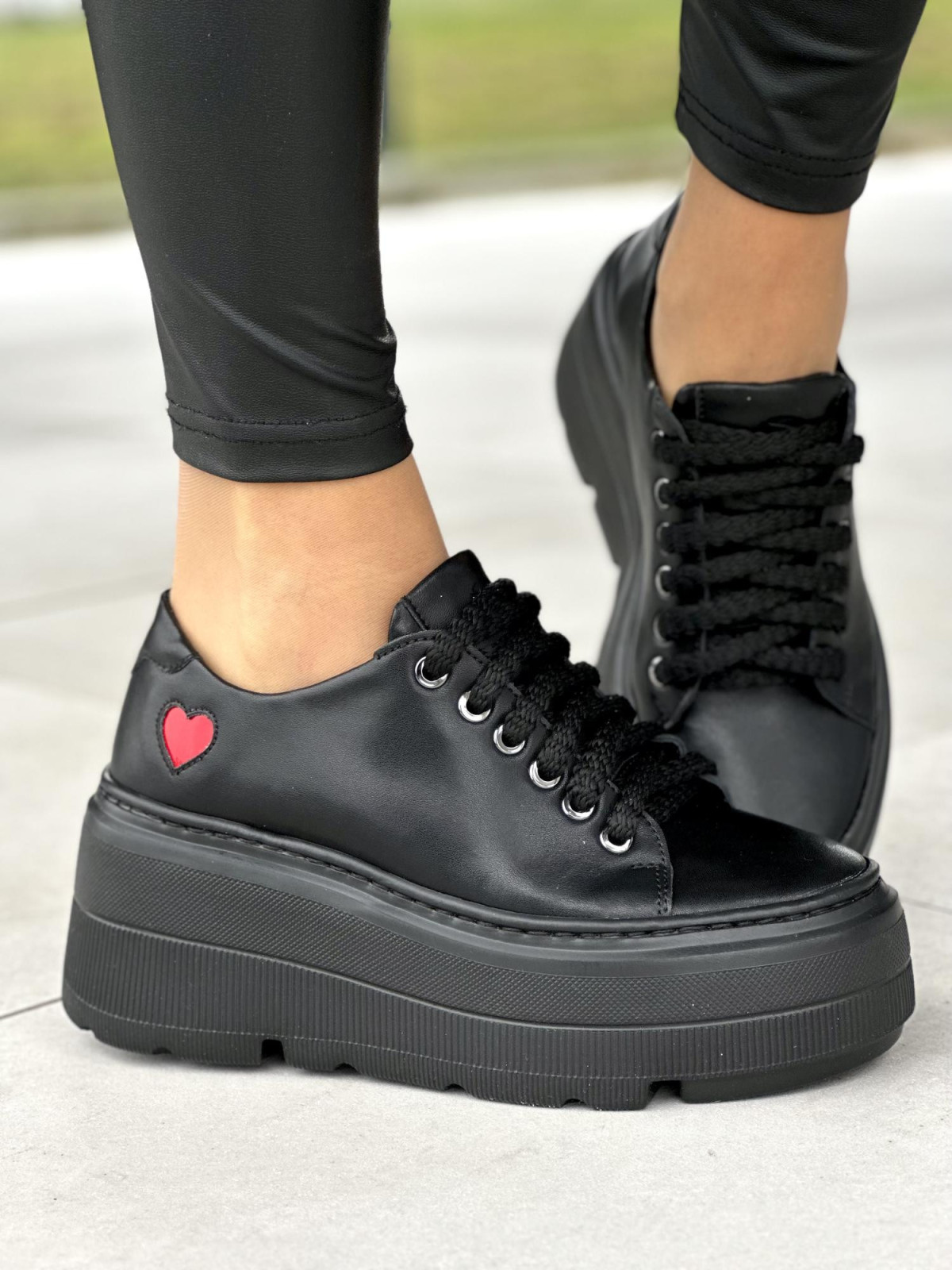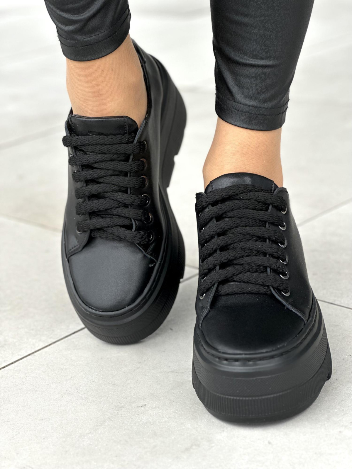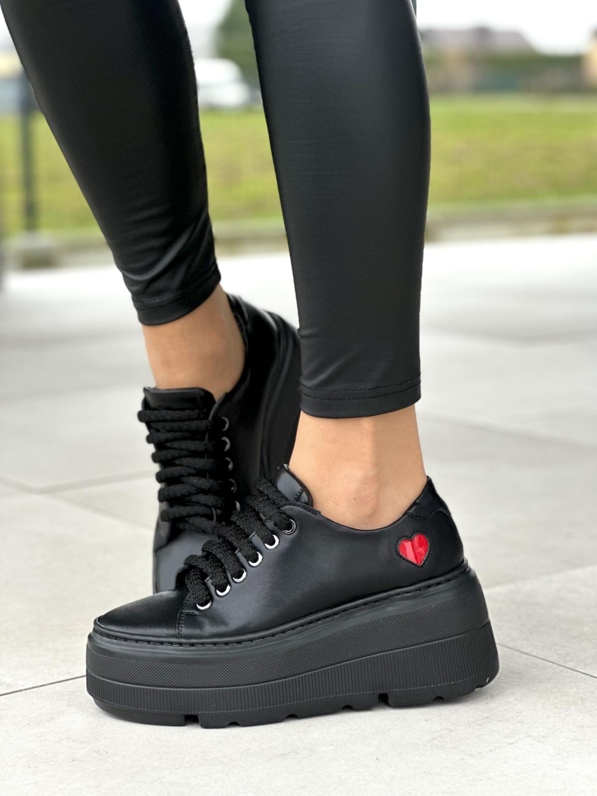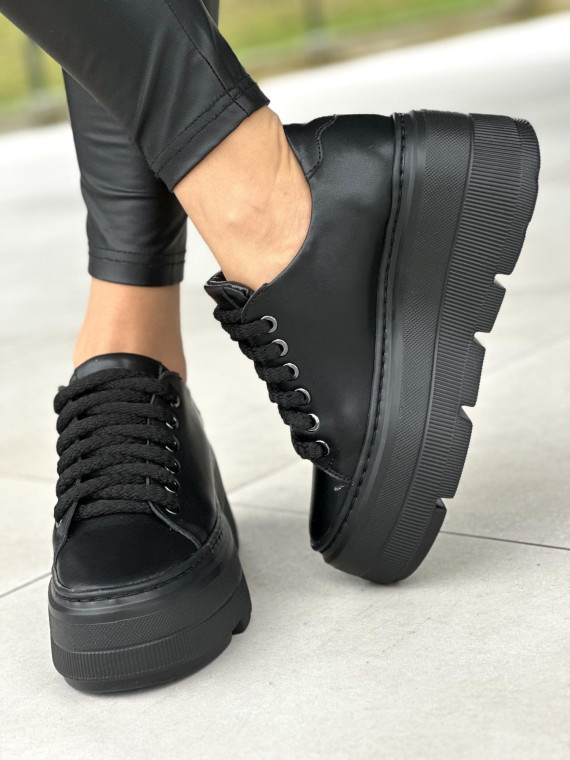 Czarne trampki damskie skórzane