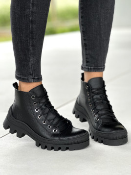 Czarne trapery damskie skórzane wykonane są w całości ze skóry naturalnej licowej, idealnie dopasujesz go do wiosennych i letnich stylizacji!