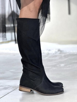 Czarne, nubukowe wykończenie kozaków nadaje im luksusowego i ponadczasowego charakteru. Klasyczny kolor sprawia, że są one łatwo łączące się z różnymi stylizacjami, zarówno eleganckimi, jak i casualowymi.