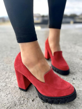 Czerwone półbuty damskie skórzane wykonane z naturalnej skóry zamszowej gwarantują komfort w użytkowaniu na co dzień i na ważnych wyjściach.