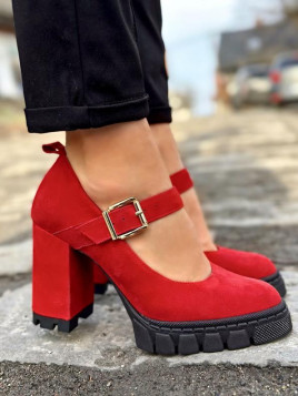 Czerwone półbuty damskie skórzane wykonane z naturalnej skóry welurowej gwarantują komfort w użytkowaniu na co dzień i na ważnych wyjściach.