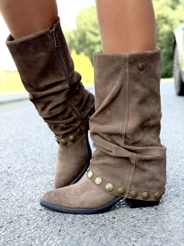 Zwróć uwagę na ozdobne, mosiężne nity. To subtelny, ale charakterystyczny akcent, który nadaje butom niepowtarzalny charakter. Dzięki nim Twoja stylizacja nabierze wyjątkowego wyrazu – niezależnie, czy założysz je do jeansów, czy do zwiewnej sukienki.