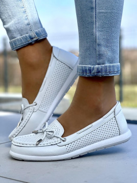 Te delikatne ażurowe białe mokasyny są nie tylko praktycznym obuwiem na co dzień, ale również modnym dodatkiem do letniej garderoby każdej kobiety. Ich subtelny charakter sprawia, że są doskonałym wyborem na wiele okazji, dodając lekkości i wyrafinowania każdej stylizacji.