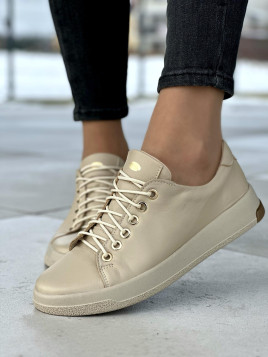 Beżowe trampki damskie Oleksy to propozycja dla kobiet ceniących sobie nie tylko modny wygląd, ale także wysoką jakość i detale. Złote oczka stanowią elegancki akcent, który wyróżnia je spośród innych trampków na rynku.