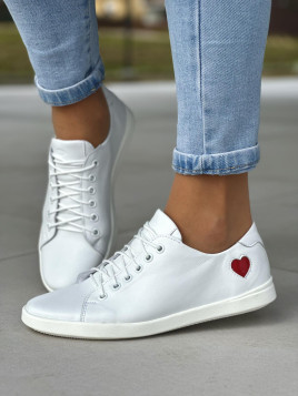 Minimalistyczny design z subtelnym, czerwonym sercem umieszczonym na białym tle nadaje im delikatności i kobiecego uroku, nadając butom unikalnego charakteru. Zgrabna konstrukcja oraz lekka, miękka skóra sprawiają, że są one przyjemne w użytkowaniu przez cały dzień.