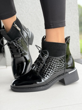 👉 Połączenie połysku i faktury – designerska mieszanka lakierowanej skóry i delikatnej tłoczonej struktury nadaje butom niepowtarzalny charakter. To detale, które sprawiają, że nie przejdziesz niezauważona.