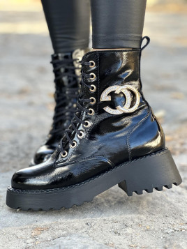 Nasze trapery to kwintesencja polskiego rzemiosła i dbałości o detale. Każda para jest ręcznie wykonana z naturalnej skóry, która nie tylko pięknie wygląda, ale także idealnie dopasowuje się do stopy, zapewniając komfort noszenia. Czarna, lakierowana powierzchnia skóry dodaje butom elegancji, a masywna, antypoślizgowa podeszwa gwarantuje stabilność i bezpieczeństwo na każdym kroku. Charakterystyczny metaliczny detal w kształcie podwójnego pierścienia z subtelnymi zdobieniami to element, który nadaje butom wyjątkowego blasku i elegancji. To doskonałe połączenie mody i funkcjonalności – dla kobiet, które wiedzą, czego chcą.