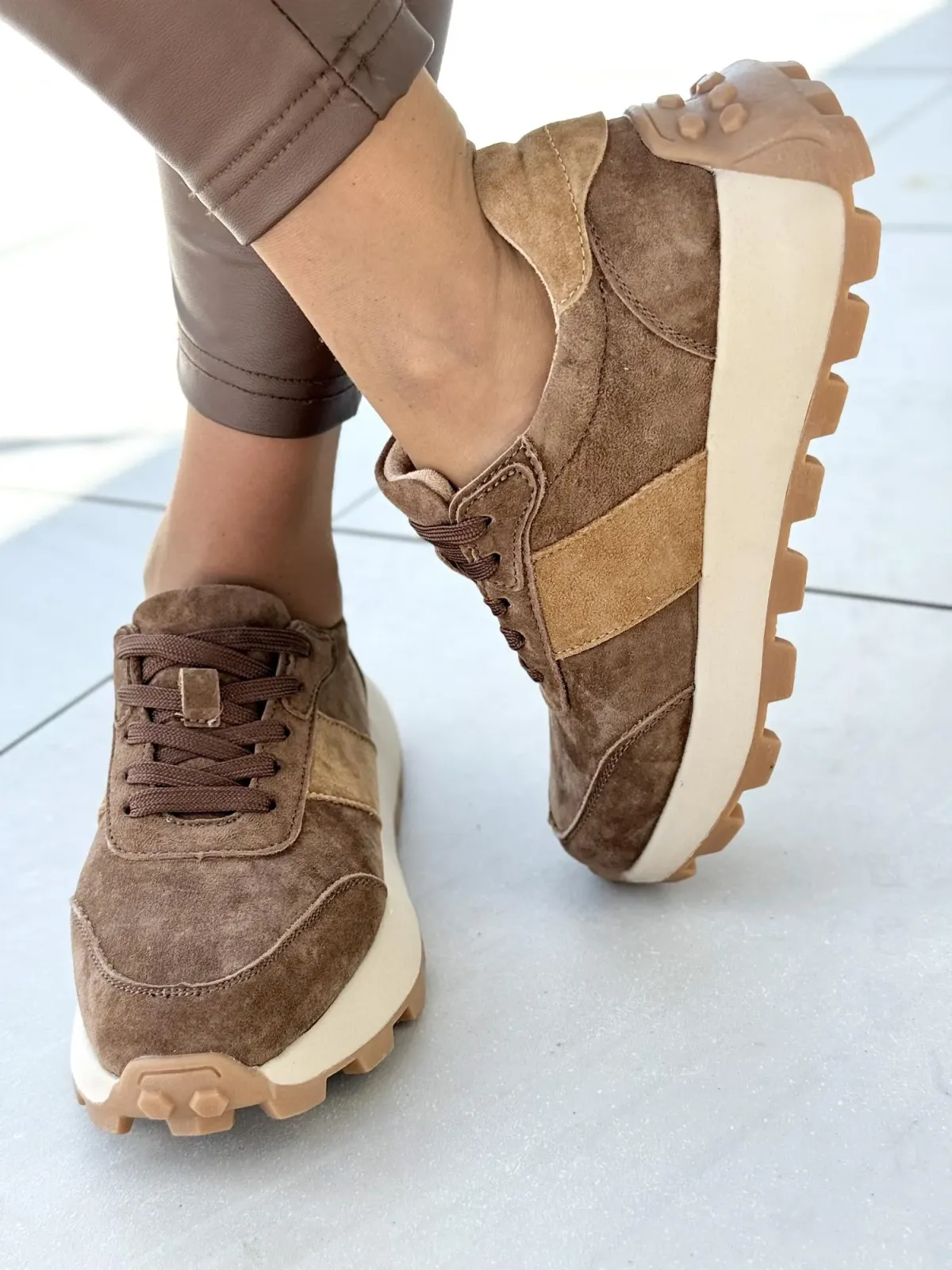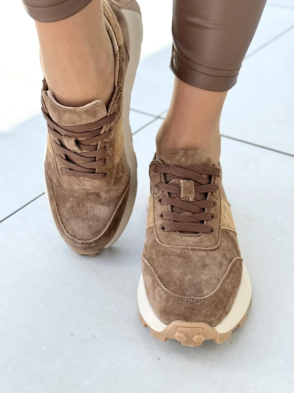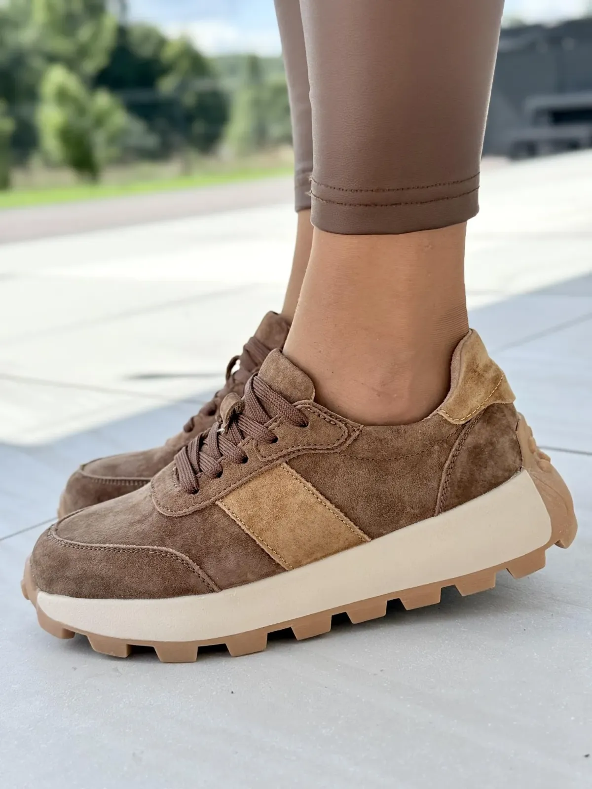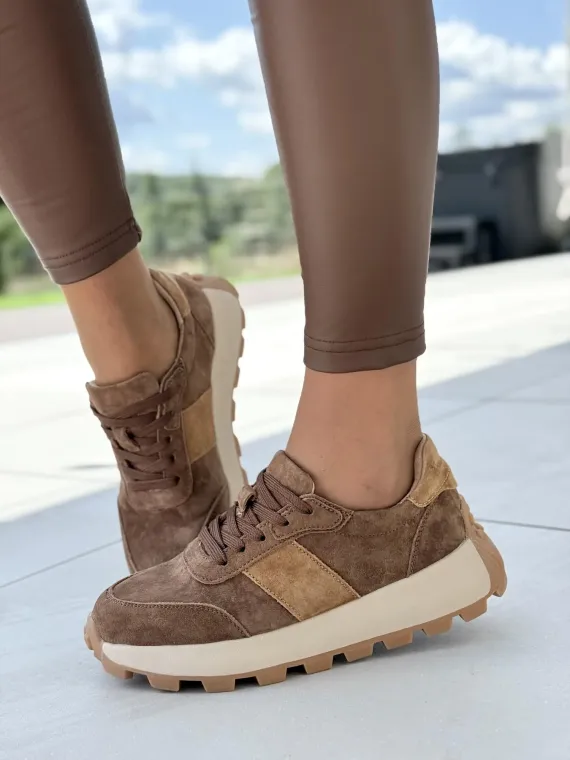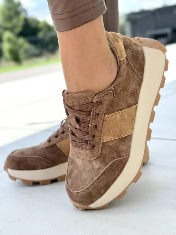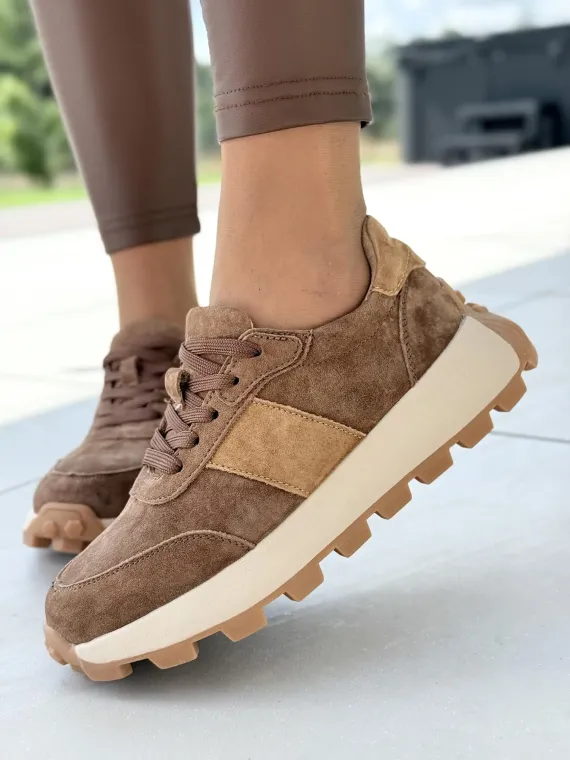 Uniwersalny design w odcieniach kawy i karmelu. Pasują zarówno do legginsów, jak i do wełnianego płaszcza. Minimalizm, który przyciąga wzrok.