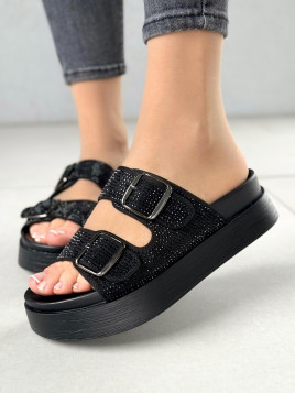 ✨ Elegancki design – ponadczasowa czerń, delikatnie połyskujący materiał i modne klamry sprawiają, że te klapki pasują do każdej stylizacji. Noś je z jeansami, sukienką, a nawet eleganckimi spodniami – zawsze wyglądają perfekcyjnie.