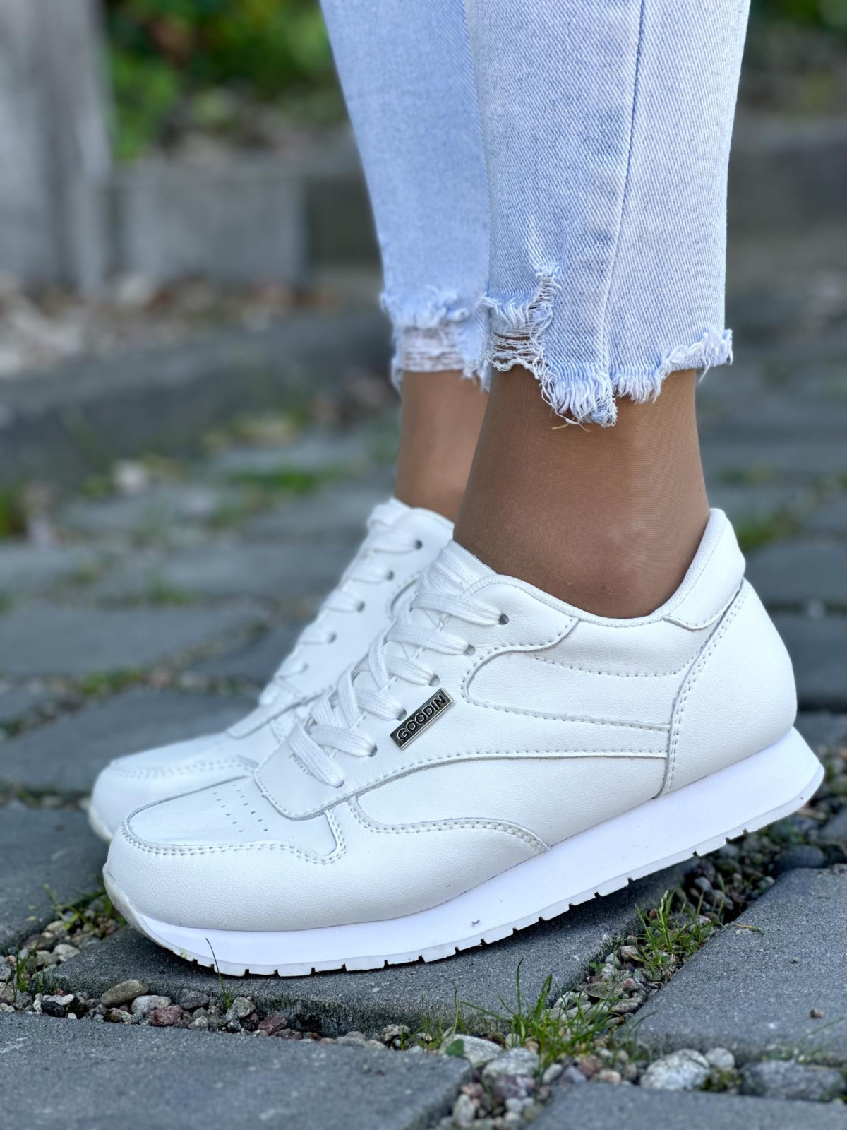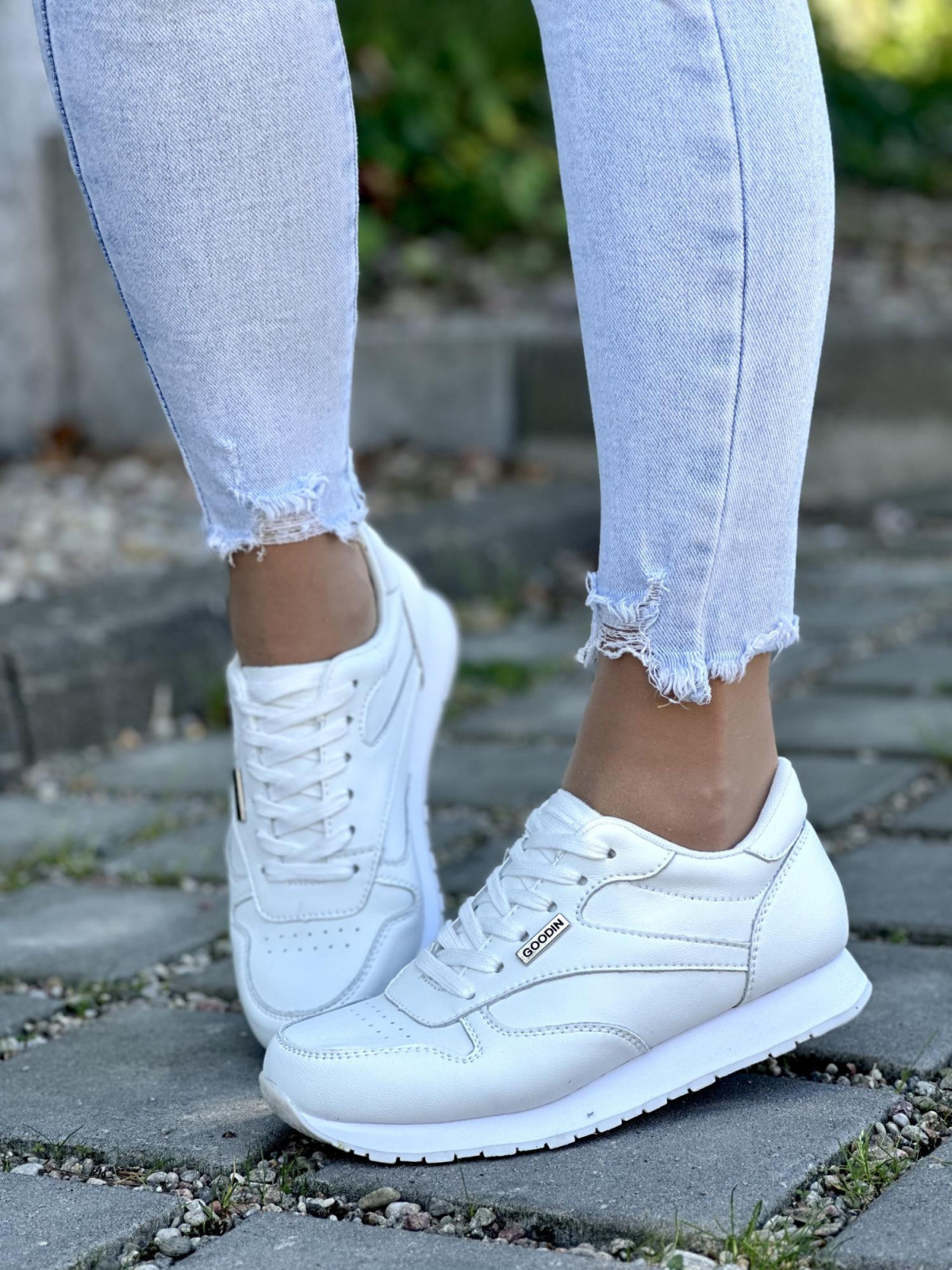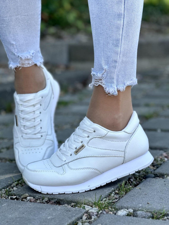 Cholewka została wykonana z wysokiej jakości, gładkiej skóry naturalnej, która zapewnia doskonałą trwałość i komfort użytkowania. Klasyczna biel butów sprawia, że są one niezwykle uniwersalne, doskonale komponując się z różnorodnymi stylizacjami - od casualowych po bardziej sportowe zestawy.