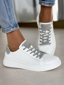Subtelne połączenie bieli i szarości sprawia, że te sneakersy pasują do wszystkiego. Jeansy, sukienka, sportowe legginsy? Żaden problem! Nie musisz już wybierać między wygodą a stylem – masz to wszystko w jednej parze.