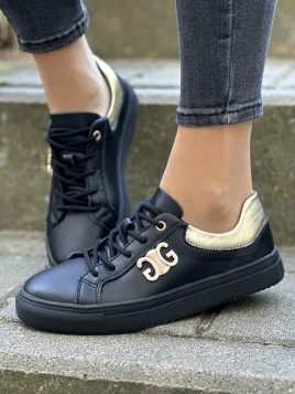 Oto idealne trampki dla kobiet ceniących zarówno wygodę, jak i styl. Wykonane z najwyższej jakości skóry naturalnej, zapewniają nie tylko elegancki wygląd, ale również wyjątkowy komfort noszenia. Czarne, klasyczne wykończenie z dodatkiem złotych akcentów podkreśla nowoczesny design, który doskonale wpisuje się w aktualne trendy modowe. Trampki te są nie tylko stylowe, ale także trwałe i wszechstronne, idealne do codziennych stylizacji. Perfekcyjnie sprawdzą się w połączeniu z jeansami czy casualowymi sukienkami, dodając Twojej garderobie odrobiny luksusu.