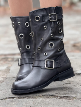 Te botki łączą w sobie elegancję z nutą rockowego pazura. Idealne na każdy dzień, dodadzą Twoim stylizacjom charakteru. Skórzana powierzchnia jest nie tylko trwała, ale też pachnie prawdziwą, naturalną skórą – ten zapach jest synonimem luksusu i jakości. Gdy dotykasz tej skóry, czujesz jej miękkość, która otula Twoje stopy, dając uczucie komfortu i ciepła. Każdy krok to przyjemność. Każdy krok to pewność siebie.