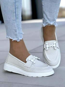 Jasno-beżowe mkoasyny damskie skóra naturalna