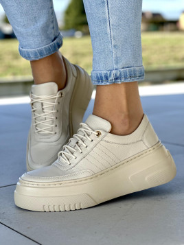 Klasyczne beżowe trampki damskie na lekkiej podeszwie light motion, to doskonałe połączenie funkcjonalności i stylu, idealne na wiosnę i lato. Wykonane z naturalnej skóry, te trampki emanują wysoką jakością wykonania, charakterystyczną dla marki Oleksy.