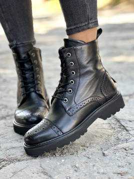 Te stylowe botki wykonane ze skóry naturalnej to idealne połączenie klasyki i nowoczesności, gwarantujące zarówno elegancki wygląd, jak i wygodę. Wykonane z wysokiej jakości skóry, zapewniają trwałość oraz komfort podczas noszenia przez cały dzień. Wykończenia w stylu brogue nadają im wyjątkowego charakteru, dzięki czemu doskonale sprawdzą się zarówno w casualowych, jak i bardziej formalnych stylizacjach. Gruba, antypoślizgowa podeszwa zapewnia stabilność na każdej nawierzchni, a solidne sznurowanie pozwala na idealne dopasowanie buta do stopy.