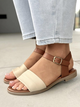 Kolorystyka, która pasuje do wszystkiego: Połączenie karmelowego brązu i kremowej bieli to klasyka, która sprawdzi się z każdym letnim outfitem.