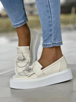 Kremowe mokasyny damskie marki Oleksy to wyrafinowane obuwie, idealne na wiosnę i lato. Wykonane z najwyższej jakości skóry naturalnej, prezentują elegancki design, który łączy klasykę z nowoczesnością. Kolor kremowy nadaje im subtelności i sprawia, że są uniwersalne, doskonale komponując się z różnorodnymi stylizacjami.