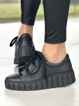 Wykonane z wysokiej jakości skóry naturalnej, te trampki są doskonałą kombinacją komfortu i elegancji. Sznurowanie gruba czarną sznurówką, zapewnia idealne dopasowanie do Twojej stopy. Idealne na letnie spacery czy spotkania z przyjaciółmi, te trampki staną się niezastąpionym elementem Twojej wiosennej i letniej garderoby.