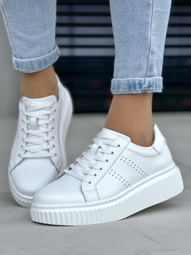 Lekkie i wygodne białe trampki damskie na wyższej podeszwie, wykonane z naturalnej skóry, są idealnym wyborem na wiosnę i lato dla nowoczesnych kobiet, które poszukują równowagi między stylem a komfortem. Ich minimalistyczny design i funkcjonalność sprawiają, że stanowią nie tylko praktyczny element letniej garderoby, ale również modny akcent.