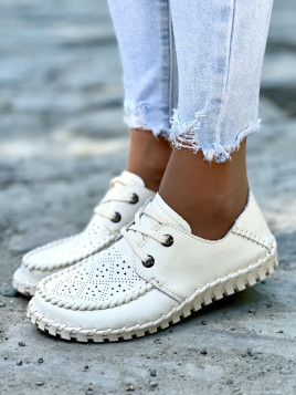 Miękkie i lekkie beżowe półbuty damskie to idealne obuwie na nadchodzący sezon wiosenno-letni w 2024 roku. Wykonane z wysokiej jakości skóry, zapewniają one komfort noszenia oraz trwałość. Ich przewiewna konstrukcja sprawia, że stopy pozostają świeże nawet podczas ciepłych dni.