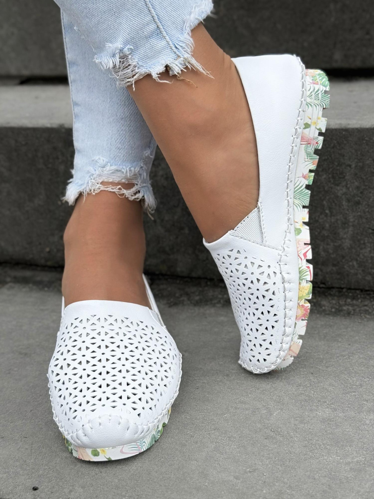 Już wiesz, że szukasz butów, które nie tylko świetnie wyglądają, ale przede wszystkim zapewniają lekkość i wygodę przez cały dzień. Teraz wyobraź sobie, że to właśnie one – białe mokasyny z ażurowym wzorem i kwiatową podeszwą – mogą być Twoimi ulubionymi butami na każdą okazję.