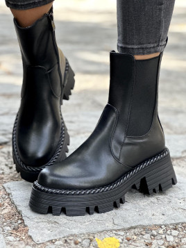 Przedstawiamy eleganckie botki wykonane ze skóry naturalnej, które doskonale łączą nowoczesny design z wygodą. Te solidne buty wyróżniają się masywną, profilowaną podeszwą, która zapewnia pewność kroku i komfort na każdej nawierzchni. Wysoka cholewka z elastycznymi wstawkami i zamkiem z boku gwarantuje idealne dopasowanie oraz wygodne zakładanie.