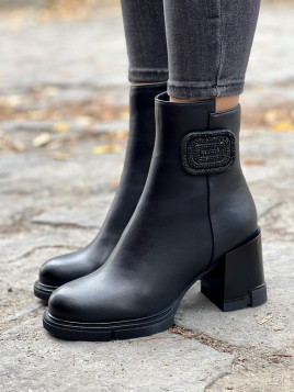 Te eleganckie botki wykonane ze skóry naturalnej to doskonałe połączenie klasyki i nowoczesnego designu. Ich minimalistyczna forma w głębokiej czerni sprawia, że są wyjątkowo uniwersalne i pasują zarówno do codziennych, jak i bardziej formalnych stylizacji. Smukła sylwetka butów pięknie podkreśla nogi, a stabilny, szeroki obcas zapewnia komfort noszenia przez cały dzień.