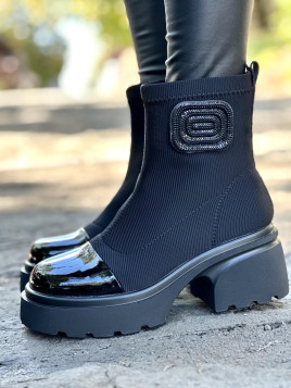 Przedstawiamy eleganckie botki, które łączą nowoczesny design z wyjątkową wygodą. Wykonane z najwyższej jakości skóry naturalnej, te botki wyróżniają się niebanalnym połączeniem materiałów – zamszowa tekstura idealnie współgra z lakierowanymi wstawkami na nosku, dodając butom szyku i charakteru. Stylowy, ozdobny detal na cholewce podkreśla ich unikalny wygląd, który przyciągnie spojrzenia.