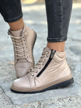 Stylowe botki wykonane z wysokiej jakości skóry naturalnej to idealny wybór dla osób ceniących wygodę i modny wygląd. Ich beżowy odcień sprawia, że doskonale komponują się z wieloma stylizacjami, dodając elegancji zarówno w codziennych, jak i bardziej casualowych zestawach. Buty posiadają wygodny boczny zamek, który ułatwia ich zakładanie, a solidna podeszwa z wyraźnym bieżnikiem zapewnia stabilność i komfort nawet na trudnym terenie. Sznurowanie pozwala na idealne dopasowanie do stopy, co zwiększa komfort noszenia. Te botki to doskonała propozycja na sezon jesienno-zimowy, gwarantując styl i wygodę na najwyższym poziomie.
