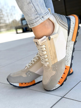 Ten design. Naturalna kolorystyka z nutą odwagi. Beż, biel i pomarańczowe akcenty. Minimalistyczne, ale wyraziste.