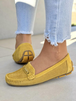 Wyobraź sobie buty, które łączą w sobie elegancję, wygodę i najwyższą jakość. Mokasyny, które pasują do każdej stylizacji – od casualowych jeansów po letnie sukienki. Prezentujemy **żółte perforowane mokasyny wykonane w całości ze skóry naturalnej** – buty, które pokochasz od pierwszego kroku!