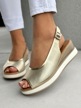 Złote sandały ze skóry naturalnej.