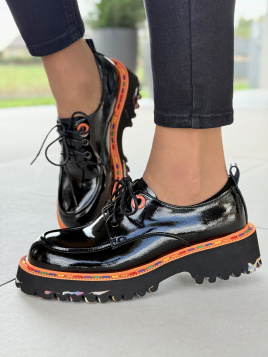 Spójrz na te półbuty. To nie jest zwykła para butów – to manifest Twojego stylu, Twojej pewności siebie i Twojego gustu. Błyszcząca, naturalna skóra przyciąga spojrzenia jak magnes, a kolorowe detale w podeszwie nadają im charakteru, którego nie znajdziesz w masowej ofercie sieciówek. To nie są buty, które „po prostu zakładasz”. To buty, które mówią o Tobie: „jestem świadoma, wiem czego chcę, nie idę na kompromisy ani w modzie, ani w jakości”.