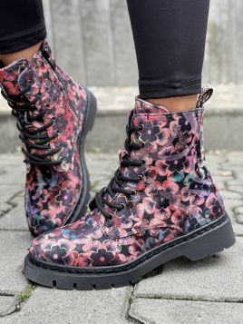 Kwiatowy wzór w tonacjach różu, fioletu i czerni jest niepowtarzalny jak Ty. Nie znajdziesz ich w żadnej sieciówce. Nie zobaczysz ich na co drugiej osobie w tramwaju.